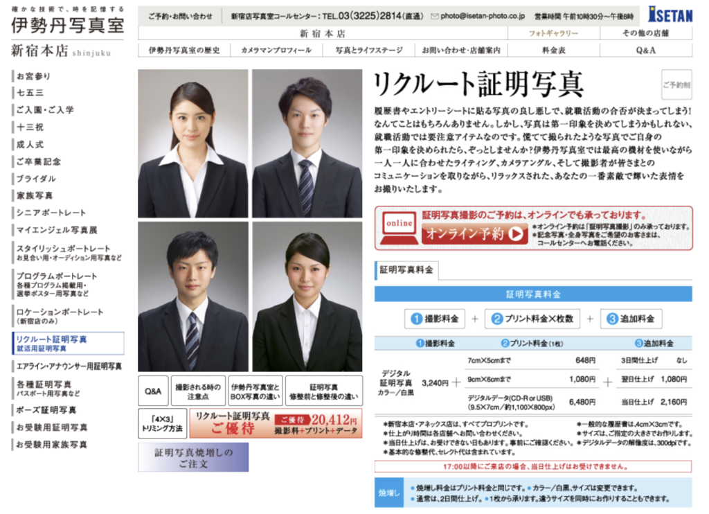 とは言え、伊勢丹写真室など証明写真としてブランド化しており、支持している親御さん世代からの推薦で撮りに行く就活生が多いようです。